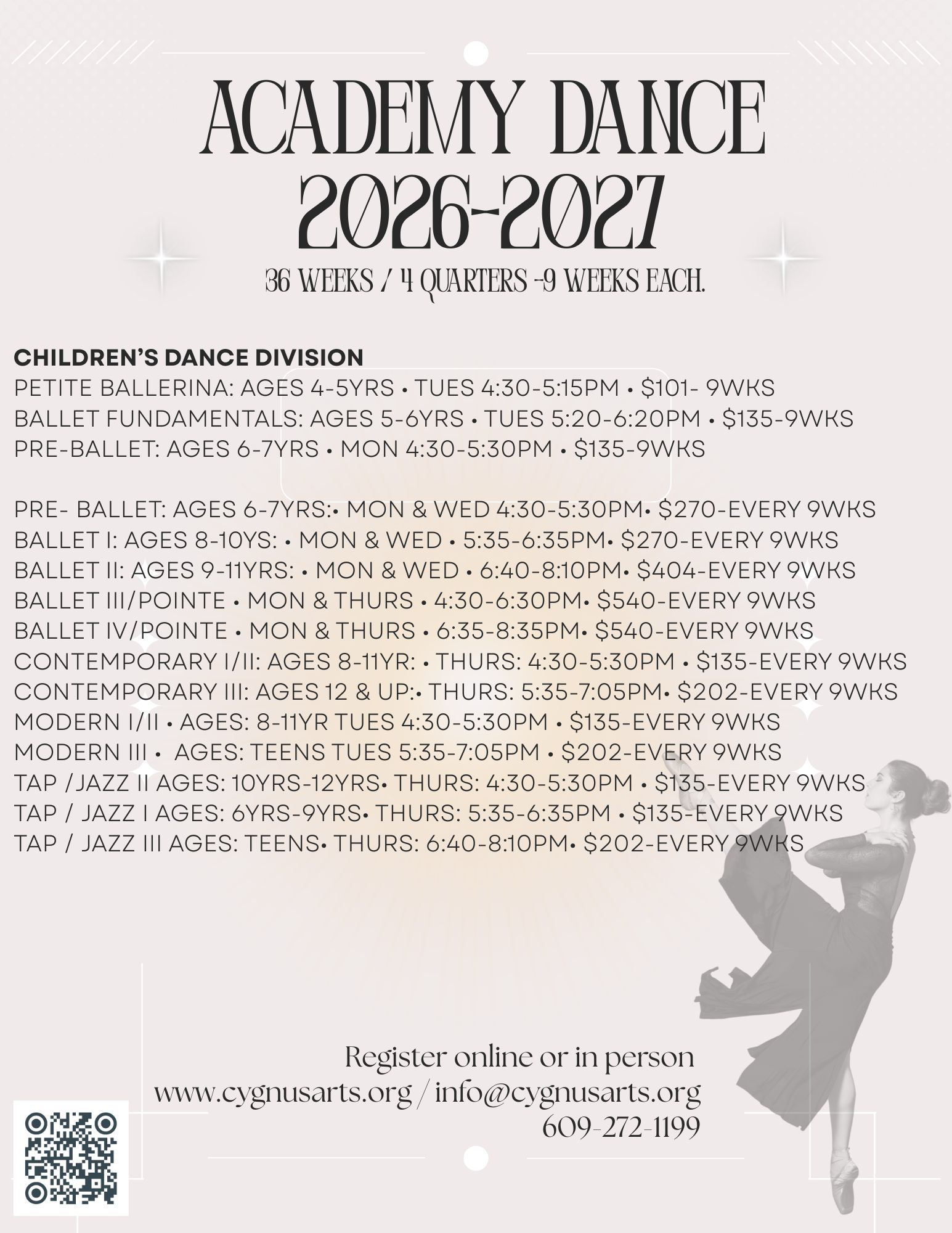 2026-2027 Registration is open for New and ongoing programs. All Fall classes begin September 8, 2026- June 2027. Some Classes are 36 weeks / 4 quarters. S.T.A.R Dance program is 20 weeks and runs January-June and July-November. Private Lessons are monthly or class cards. Scroll below for class offerings and schedule